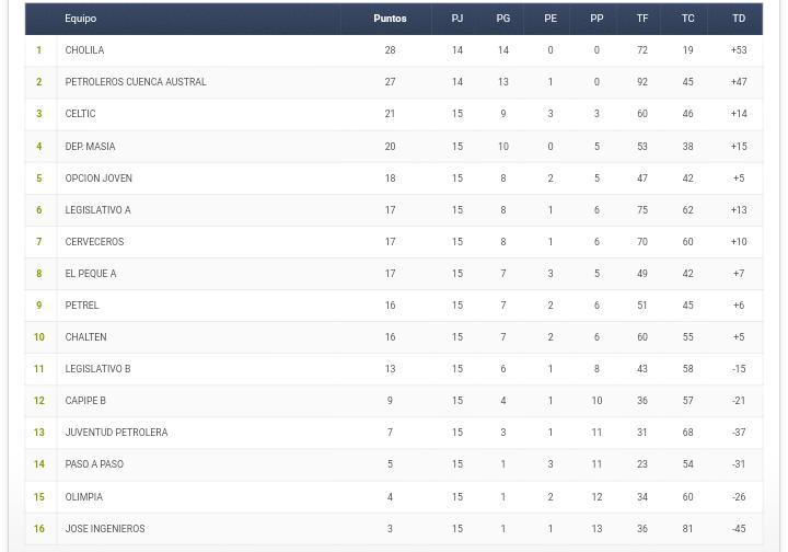 - Torneos disputados: Torneo Oficial Temporada Anual.